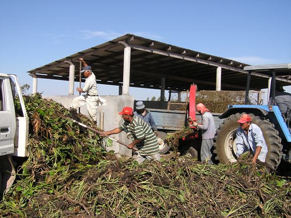 パラグアイ川を流れ下る、無数のホテイアオイ(アグァペ)群。レダ農場では、一昨年よりこのホテイアオイを堆肥作りに利用して、その効果を確認してきました。空洞と養分を豊かに含むホテイアオイは、堆肥材として、土壌改良材として、マルチ材として、すでに農業に欠かせないものとなっています。繁殖力が極めて旺盛な上に、上流から絶え間なく流れて来る、事実上無尽蔵の「天然資源」と言えます。