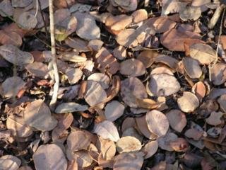 森の落ち葉 Rich layer of leaf mold is under these frallen leaves. One of the gifts of the forest. この落ち葉の下に腐葉土が堆積しています。 森の恵みのひとつです。 |
