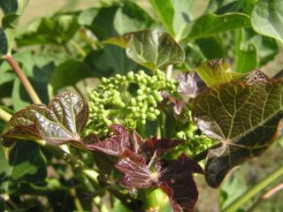ジャトロファの花蕾 Buds of male and female flowers of jatropha. When open, bees and flies visit for honey. 雄花と雌花とが集合しています。雌花には子房がありますね。 天気の良い日には、ミツバチ、ハナバチ、ハナアブなどが多数訪れます。 |