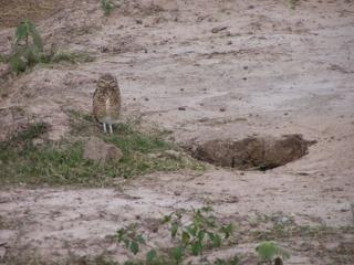 アナホリフクロウ Burrowing Owl. "Urukurea Chichi" in Guarani. The husband and wife are guardind their nest underground. They made this home at the roadside of the Second Farm. アナホリフクロウ夫婦が巣穴を守っています。 雨が降ったらどうなるか心配です。 第二農場入口付近の、人と車両の往来の激しい農道の端にて。 |
