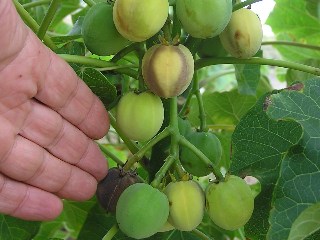 ジャトロファの実 Fruits of jatropha. They grow to the size of a plum in 30 to 40 days after blooming. 開花から30〜40日で、梅の実ほどの大きさになりました。 |