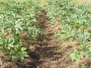 タルタゴ Plants of castor bean, after two months of final transplanting. 定植後2ヶ月経過したもの。 |
