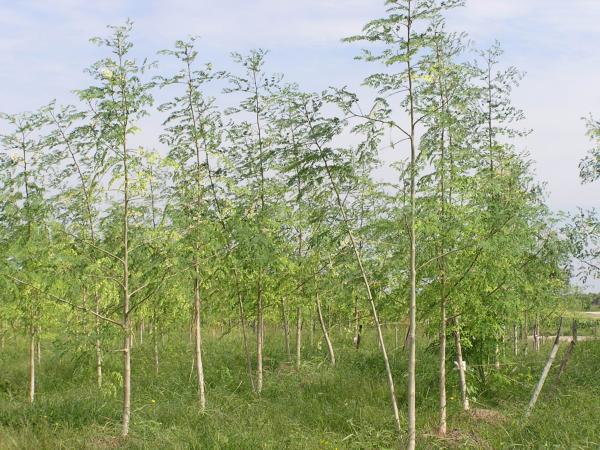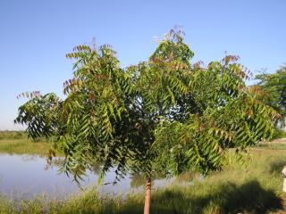 ニームの若木 Young tree of neem. インドセンダンとも呼ばれます。成分は虫類の忌避剤として知られますが、モリンガに次ぐ有用樹です。(第二農場の貯水池にて) |