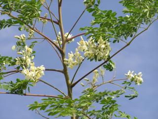 モリンガの花 Blossom of moringa. 花は精力剤として知られます。定植後半年で開花しました。 |