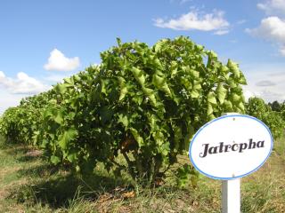 ジャトロファ Experimental farm of jatropha. おなじみのジャトロファも、はじめに植えた株は1歳半になりました。みずみずしい葉を繁らせて、たくましく成長を続けています。(第二農場にて) |