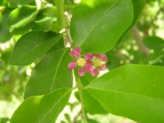 ニームの花 Blossom of neem. 同じ仲間のパライソ(センダン)よりも地味な花です。 |