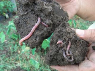 ミミズが発生 Enjoying fishing at Puerto Leda かつて、カチカチの固い粘土質の土だった農場に、ミミズが棲むようになりました。堆肥作りをして、土壌改良に努めてきた結果です。(第一農場にて) |