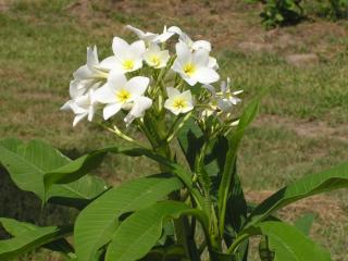 アボカドの若木 Young tree of avocado. アボカドの苗木ということで、取り寄せて植えた木に花が咲きました。 訂正:これはアボカドではなく、プルメリア (plumeria) でした。 |