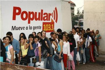 チケットの窓口に延々と行列 Global Peace Festival tickets were the hottest item in town, and thousands lined up hoping to get one.To have a chance of getting free tickets, every person had to bring a donation for Asuncion’s poorest children. GPFの入場券を求めて、アスンシオンは過熱状態に。 アスンシオンの最貧民層の子供たちにプレゼントを持って来ることと引き換えにGPF無料入場券をゲットできる。 |