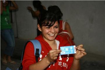 アスンシオンで最もホットなチケット Success! A Paraguayan high school student displays the hottest ticket in town! 「こんなに凄い反響は、初めてです」と、ラジオ放送局Radio Popular のGPF大会担当者。 「やった!!」 人気沸騰のチケットを遂にゲットした、パラグアイの高校生。 |