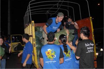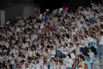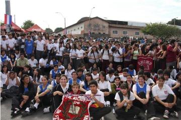 学生・生徒パワーが各所に大結集 The projects foster a new sense of civic pride and engagement among the young people of Paraguay. 一連のプロジェクトにより、パラグアイの若者たちの間に、公民としての誇りと連帯感を育んだ。 奉仕プロジェクトの最終日、最後の奉仕プログラムと打上げ祝いのために集う学生・生徒たち。 |