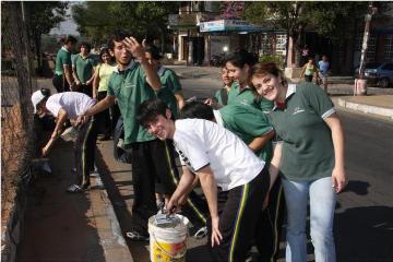学校ぐるみの参加で盛り上がる More than 5000 students from 70 schools joined the GPF in the “Asuncion, My City” service projects in June. 「わが町アスンシオン」 をテーマとする、一連の奉仕プロジェクトに、70校から5,000名を超える生徒が参加。 |