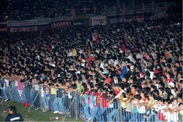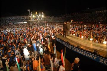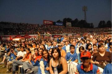 午後5時 Club Olimpia, Asuncion, 5pm: 25,000 people are gathered for the 1st Global Peace Festival of 2008. アスンシオンのクラブ・オリンピア競技場、午後5時。 2008年第1回GPFに25,000名が集う。 |