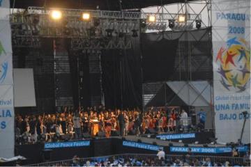 7月2日から5日にかけ、パラグアイの首都アスンシオンで、全国民的行事であるグローバル・ピース・フェスティバルが開催されました。これには中央政府、アスンシオン市、学校、民間団体、マスメディアを含むほとんどの著名企業が参加して平和への実践活動を高揚する大規模な行事に発展し、当協会の現地法人FDSANS(財団)も共催者として協力しました。いずれの機関、団体も完全無償での協力を惜しまず、草の根レベルから大統領まで幅広く国民に趣旨が浸透し、同国の歴史でもまれに見る盛況となりました。