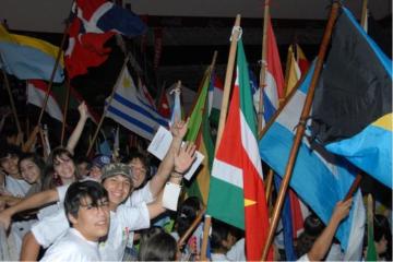若者の歌声 A 1,000 Voice youth choir from the UNESCO Schools of Asuncion sings the GPF anthem. アスンシオンのユネスコ・スクールより、1,000名の青年コーラスがGPF祭典歌を歌う。 |