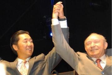 メインスピーカー登場 GPF Founder Hyun Jin Moon asks the crowd if they are ready to dream a big dream of peace. 「皆さんは、大きな夢を持つ気がありますか?」 と観衆に問いかける、GPF創設者、ヒョンジン・ムン博士。 |