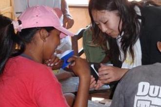 子供たちに遊びを教える Children quickly learn how to play many new games. 鬼ごっこ、じゃんけんぽん、あっち向いてホイ、など大人気。すぐにみんな覚えてしまいました。 |