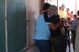 別れがたい気持ち I wish I could stay here longer! もっとここにいたい。涙で別れを惜しむボランティア。 |