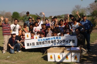 2008年実行の第8回国際協力青年ボランティア隊8名(男女各4名)は、さる8月20日に成田空港を発ち、9月5日に全員元気に帰国しました。第7回(2007年)のオリンポ市での植樹活動をさらに発展させ、先住民コミュニティのエスペランサ村を徹底的に美しく、清潔で快適な住環境にするため、地元の生徒たちと一緒になって、強健で有用性の高いニームの苗木を植えました。