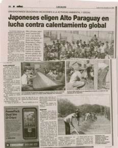ABC新聞が報道 (2008年9月8日) The daily "ABC" reports the activities of the Japanese volunteers in Alto Paraguay. |