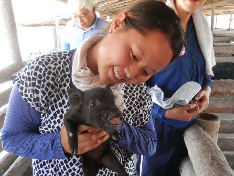 パクー養殖池を見学 |
