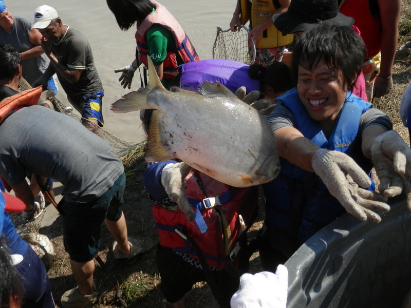 養殖パクーの追い込み |