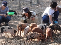 訪問者は、健康な家畜に限り、管理人の指導の下で触れることができます。