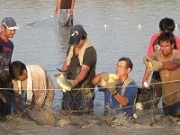 稚魚をパラグアイ川に放流
