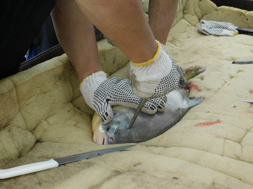 2022.10.20 パクー水揚げ -- 脳天締め。14:42