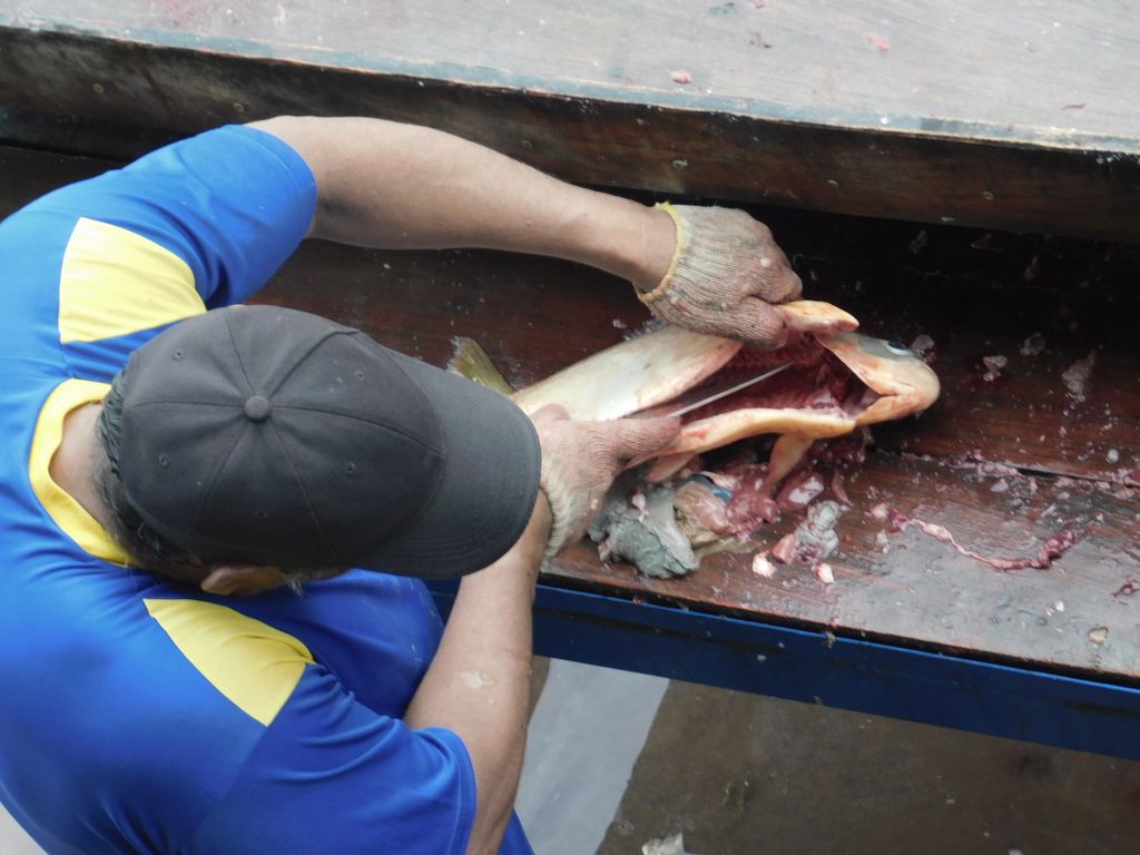 2022.10.20 パクー水揚げ -- はた目には、スイッ、スイッ、ザクッ、ザクッ、と切っていく。16:28